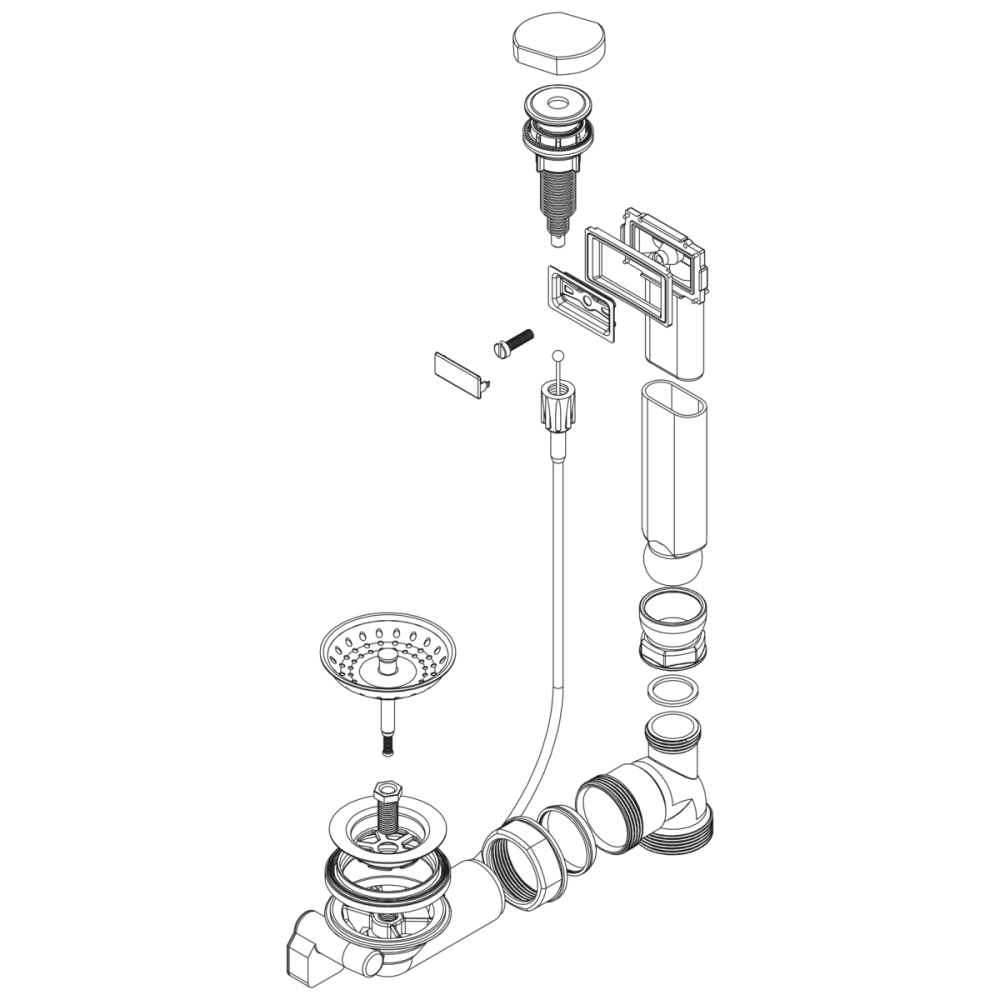 Vypouštěcí sada pro jednodřezy s přepadem ve vaně dřezu s obdélníkovým odtokem